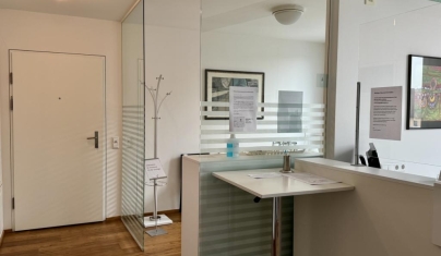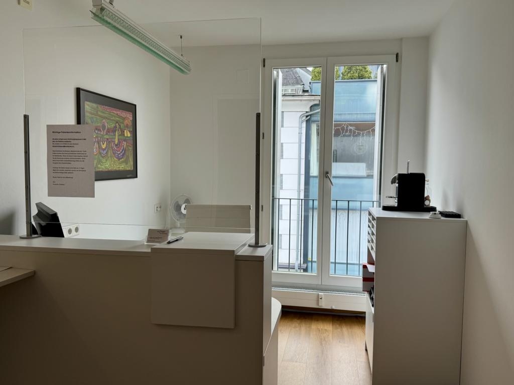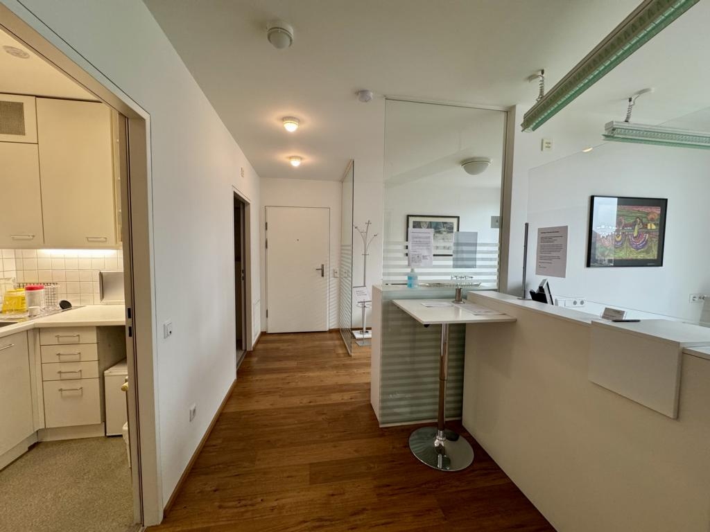 Die Räumlichkeiten sind einladend hell gestaltet und teilen sich in einen offenen Empfangsbereich, zwei abgeschlossene Räumlichkeiten, einer multifunktionalen Kaffeeküche und 2 WCs.